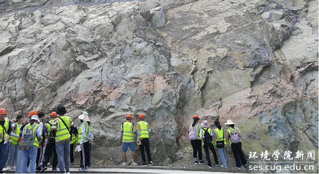 同学们在老师带领下进行黄陵岩体观察描述