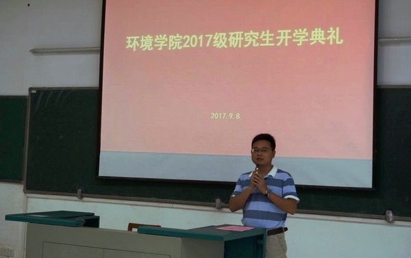 2017级研究生开学典礼暨入学教育大会在东区化学楼阶梯教室隆重举行。学院党委书记李素矿,副院长王红梅、甘义群,党委副书记朱继,环境地质系主任周建伟,研究生秘书刘凤莲及研究生辅导员王碧出席开学典礼。