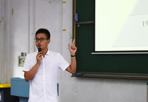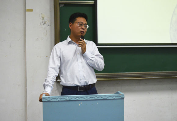 历史,庞大的师资力量以及学生风采,告诉我们要有作为环院人的自信以及对自身自信。随后他又提到感恩,感恩国家、学校和校友建立起的奖励资助体系,感恩每一个为学生工作默默付出的人。俗话说:“没有规矩,不成方圆。”身为学生,就必须服从学校学院相应的规章制度。他还强调,既然我们选择了地大,就是选择了早操,作为一名学生一定要按时上课和做早操。谈到大学规划,他提问到学生为什么要上大学,同学们的回答各不相同,但都具有远大的抱负,生物科学班的一名学生慷慨激昂的回答道:“我为中华之崛起而读书!”,现场响起了热烈的掌声。