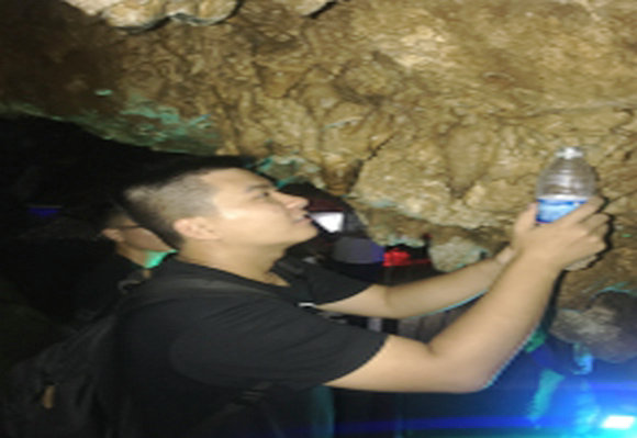 鸡冠洞地处伏牛山脉鸡冠山内部,是一出典型的经地下水溶蚀而成的喀斯特地貌。进入洞穴后,我们被眼前大自然的鬼斧神工所震撼,千姿百态的石笋、钟乳石刻画着岁月的痕迹。洞内由于不收阳光直射又处于大山深处,气温较低,冬暖夏凉。此处的地下水由于常年的溶蚀钙镁离子含量应该偏高,此外,这里的地下水又与作为县城供水水源的老君山水与养子沟水相隔不远,于是我们在鸡冠洞不同地势的两处分别取了两处水样,以便行程结束后的化验分析。