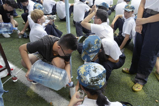 军训服务点热情为同学服务