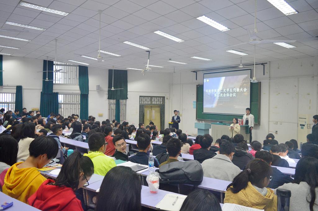 召开第二次学生代表大会第二次全体会议。学院党委副书记姜明敏老师、团委书记王碧老师、兼职辅导员汪静老师及200余名学生代表参加大会。学生会主席陈柳源主持大会。