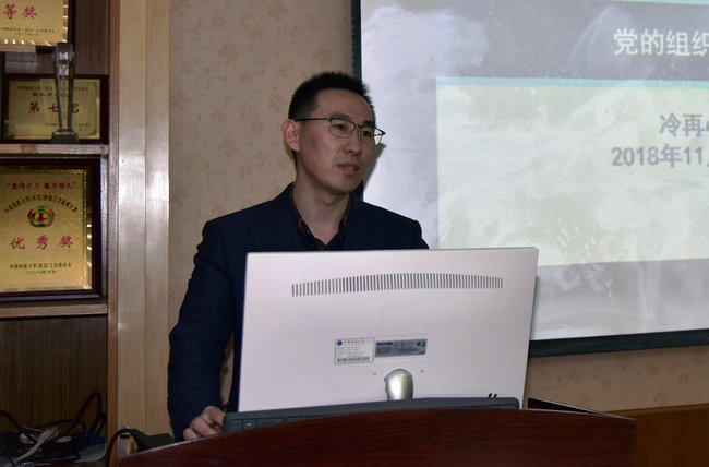 冷再心详细介绍了“三会一课”制度、民主生活会制度、组织生活会制度、民主评议党员制度、谈心谈话制度等党的组织生活的基本制度,以及党的组织生活的重要载体-支部主题党日。冷再心强调党支部书记要深刻认识加强和改进党支部建设工作的重要性、紧迫性,以高度的责任心和使命感投入到支部工作中去,努力把党支部建设成为坚强战斗堡垒,充分发挥党支部的战斗堡垒作用和党员先锋模范作用。