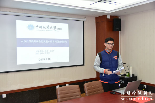 (武汉)为例》(指导老师为刘延锋副教授、何靓副教授),以及大三本科生张彧申报的项目《水热处理污泥提升蛋白质脱水性能协同蛋白质回收》(指导老师为张伟军副教授)均入围复赛。学校复赛于2019年3月初举行,将选拔12支优秀团队代表学校参加省赛。