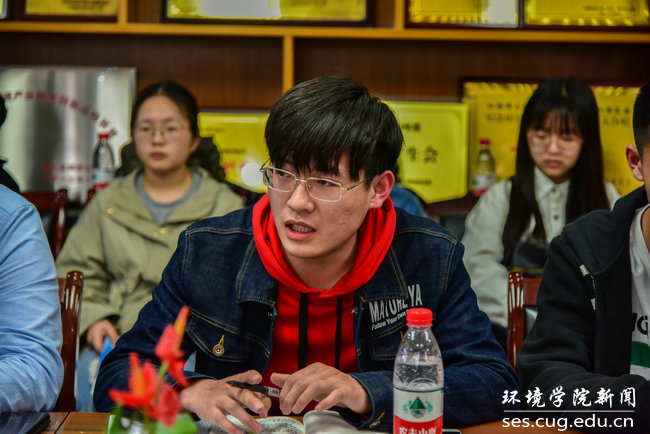 “张国旗班”团支部书记陈雪杨发言。她说,张国旗校友是地大学子的楷模。作为第一任团支书,将以身作则,带领支部同学探索组织工作新方法,不断优化服务同学质量,努力为同学们搭建素质能力提高的平台。
