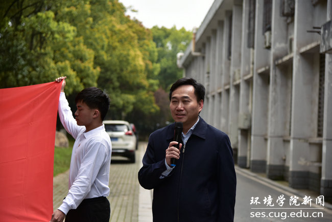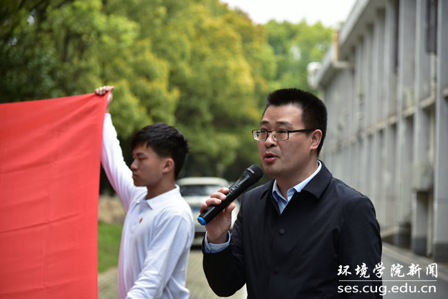 水资源与水文地质系主任、张国旗校友在校期间班主任万军伟讲述张国旗校友先进事迹。他说,张国旗毕业时放弃了优越的工作机会,选择回到贫困的家乡基层,投身于解决山区吃水难、用水难的问题,并在工作中,为保护他人,奉献出自己年轻的生命。他表示,张国旗身上秉承着地大人“艰苦朴素、求真务实”的精神品质,甘于奉献、勇于担当。他希望每位同学能向张国旗学习,为实现中华民族伟大复兴的“中国梦”贡献力量。