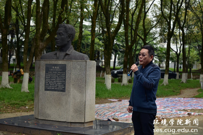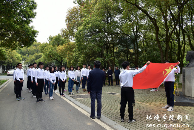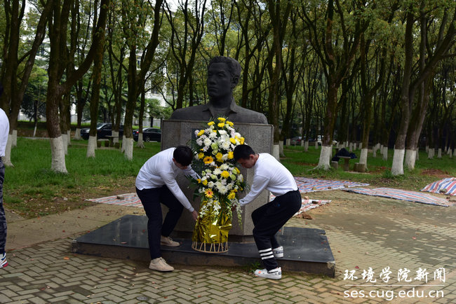 优秀校友张国旗,学习弘扬“张国旗精神”。4月4日中午,张国旗塑像清明祭扫活动暨“学习张国旗,奋进新时代”主题团日在张国旗塑像旁举行。党委学工部部长邬海峰 , 校团委办公室主任黄蕾,学院党委书记李素矿、党委副书记姜明敏、水资源与水文地质系主任万军伟、团委书记王碧、院团委副书记李平及“张国旗班”团支部全体成员参加本次活动。