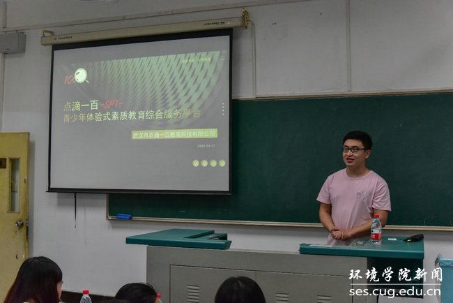 2017年度十大创业先锋郭科赶,向同学们介绍他创立点滴一百教育科技公司的心路历程。郭科赶表示,同学们要敢想敢做,抓住大赛的机会提升自己,丰富自己的大学生活。