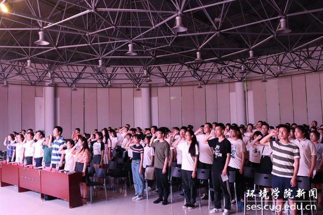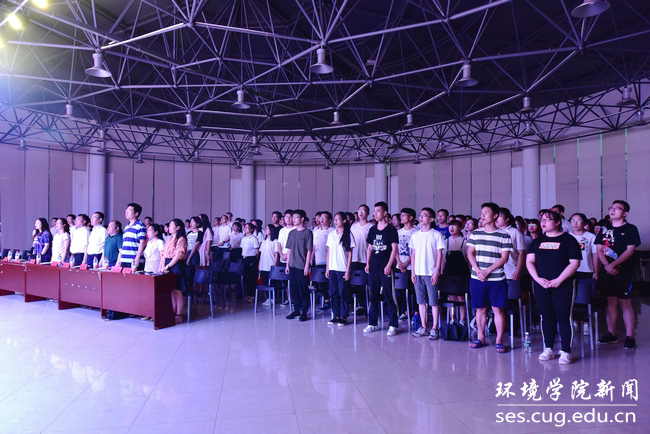 全体师生在学院团委书记王碧的带领下重温入党誓词。