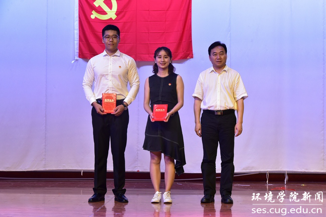 冷再心、王渊为获得三等奖的党支部颁奖