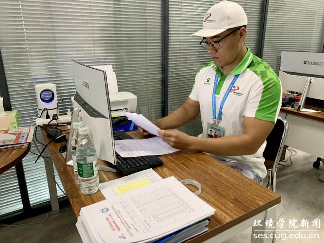 办公室“小水杉”主要负责领取和分发报纸、整理或制作相关文档和表格、从文件中提取和重新整理相关信息等工作。来自17级地下水科学与工程专业的办公室志愿者郑波林说道:“志愿工作不分大小,完成好就是对赛会做出的贡献!”