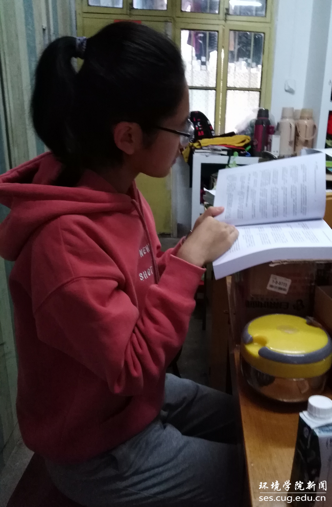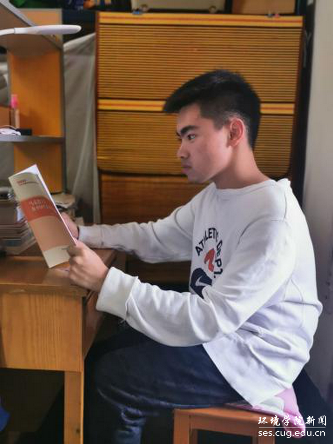 林思楠同学在寝室阅读《习近平生态文明思想精选》