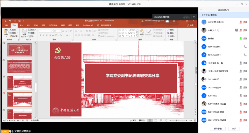 参会师生党员在腾讯会议室聊天框热烈讨论