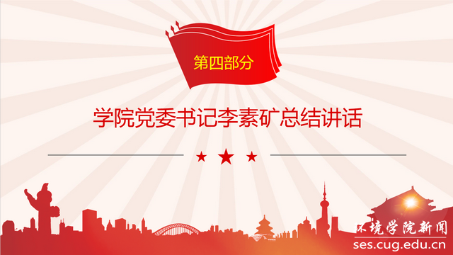 学院党委书记李素矿总结讲话,他说,18小说 党委荣获教育部第二批全国党建标杆院系,离不开全院27个师生党支部的扎实工作基础和强有力的党建工作队伍,离不开每个党支部的战斗堡垒作用、每个党员的先锋模范作用和学院党委政治核心作用的充分发挥和相互联动,代表学院党委向大家表示衷心感谢。他在充分肯定了各个党支部所做的工作方案和创建思路基础上,要求各个党支部创建方案要与学校、学院的方案要求形成“一盘棋”。一要推进“七个有力”,做到教育、管理、监督党员有力,做到打铁还需自身硬;同时要发挥战斗堡垒和先锋模范作用,团结群众,做好非党员师生工作,做到组织、宣传、服务、凝聚师生有力。二要扎实开展习近平生态文明思想“三进”,争做新时代生态环保铁军。把规定动作和自选动作有机结合,在做好做齐党建规定动作基础上,将党建工作和专业学习、自身发展紧密结合,体现跨学科专业教育特色,体现本科、硕士、博士各学段特点,推进水土气生环一体化发展格局,推进美丽中国“4+N”环境地球科学类课程思政,推进张国旗班行动计划,做到支部党建有特色有品牌有亮点。三要进一步提高政治站位,让党旗高高飘扬。党员同志要亮明身份做党建,支部要旗帜鲜明讲政治,在思想上政治上行动上同以习近平同志为核心的党中央保持高度一致,增强“四个意识”坚定“四个自信”,做到“两个维护”,做“四讲四有”的合格党员。四要继承优良传统,创新探索。各位支部书记要加强党性修养,再接再厉,做好每次活动每个环节的传承创新,形成历史积淀。只有这样,每个支部的党建工作才能一步一个脚印扎实推进,不断迈上更新更高台阶,实现学院党建高质量发展。