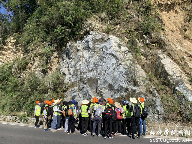 第一小组的杜柳杨同学说:“三天的出野不仅让我们领略到秭归地区的自然风光之美,也让我们对地质学的研究有了更深刻的理解。在山坡上远眺,赞美这山峦巍峨,更惊叹于三峡大坝那雄伟的身躯;在岩石前驻足,“将今论古”,用严肃的知识叩问地球十亿年前的模样;缘路而行,一步从一组岩层越向另一组岩层,却不知这一脚迈过了几个百万年的时光。同学们的热情,正如这盘山公路边一簇一簇鲜艳的百日菊。虽有辛酸艰苦,但也在合照的镜头前,和老师同学们用一笑带走了。”