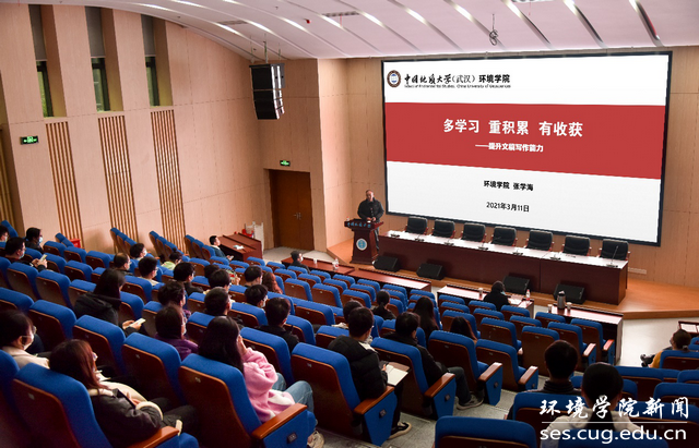 新闻审稿人,多年从事新闻宣传工作,他的报告生动、实用,为同学们提升文稿写作能力提供了重要启示帮助。作为环境学子,要用爱学院、为环境的情怀,讲好环境故事、写好环境人物、传播环境声音,在写作实践中锻炼自身、在服务学院中提高自己。
