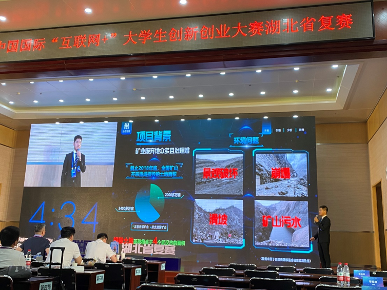 《脉恩环境-矿山生态复绿引领者》团队从学校组织申报的众多项目中脱颖而出,经过层层评选,团队成功进入湖北省决赛,于7月29日在湖北工业大学开展湖北省复赛小组赛,斩获金奖。7月30日开展金奖排位赛,最终以湖北省第47名的优异成绩晋级国赛。