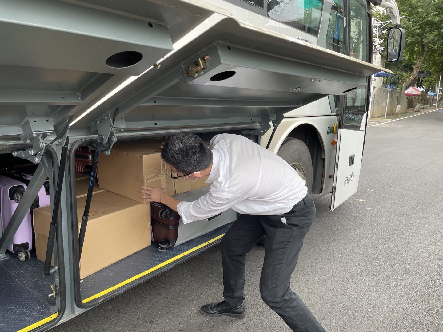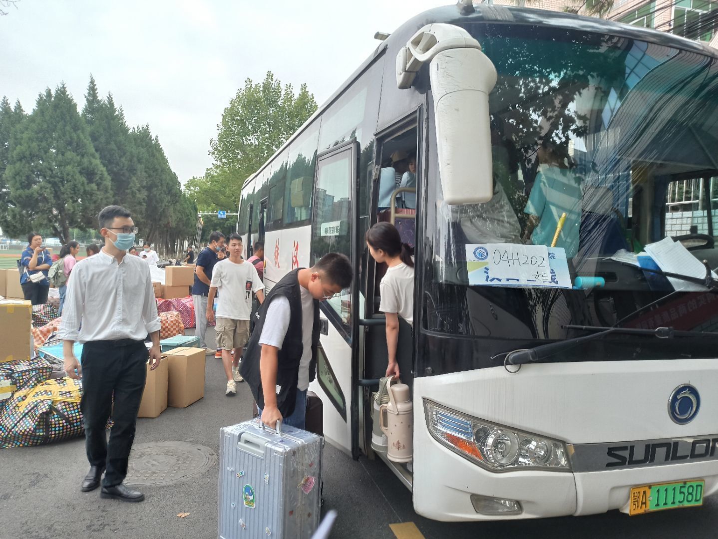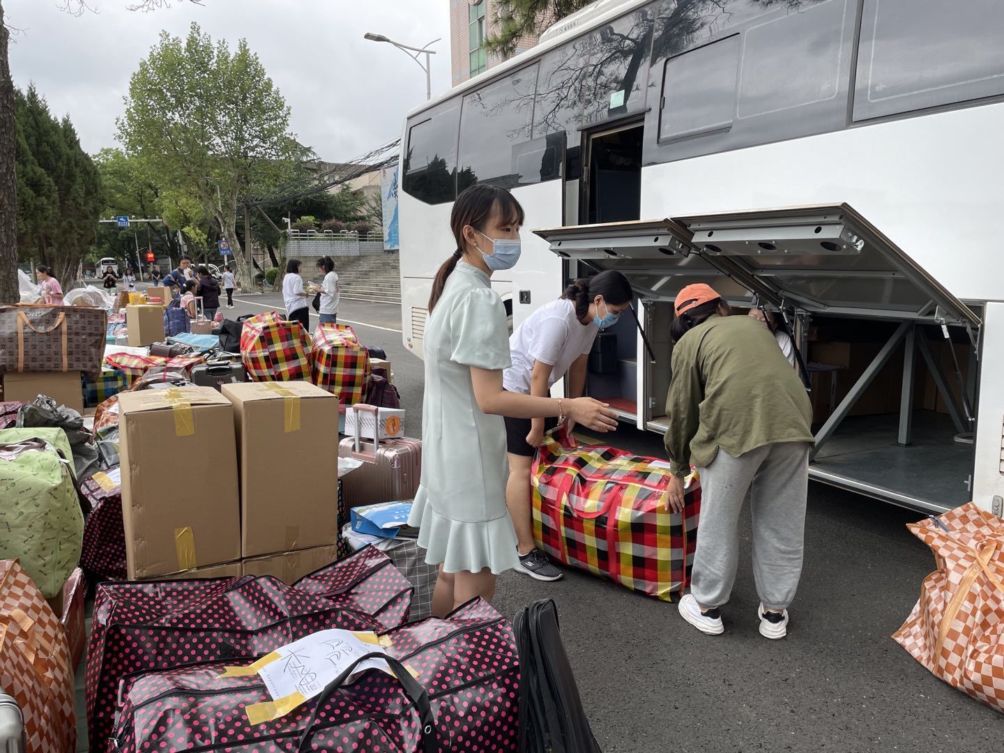 20级辅导员宋霖老师组织学生搬运行李