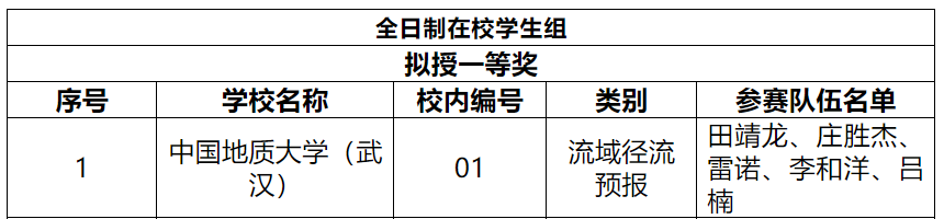 团队学子田靖龙、庄胜杰、雷诺、李和洋、吕楠,斩获流域径流预报学生组一等奖,顾西辉教授荣获优秀指导老师。