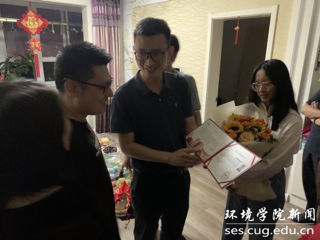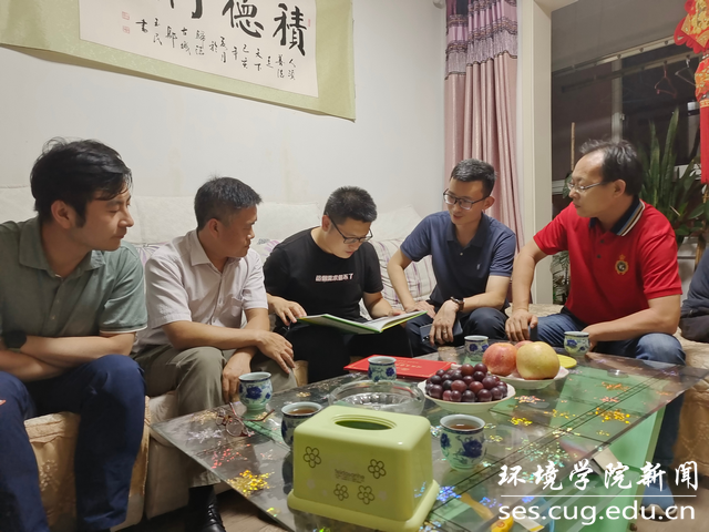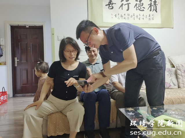 北戴河、周口店、秭归野外实习,并分享了实习过程中的趣事。张云飞认真翻阅了两本画册,表示从地大师生野外实习的风采中,看到了地大人“艰苦朴素,求真务实”的校训精神,为即将成为地大研究生感到开心与自豪。同时,张云飞也跟老师同学们交流讨论了未来的学习计划和对研究生生活的憧憬。最后,老师同学们与张云飞一家合影留念。