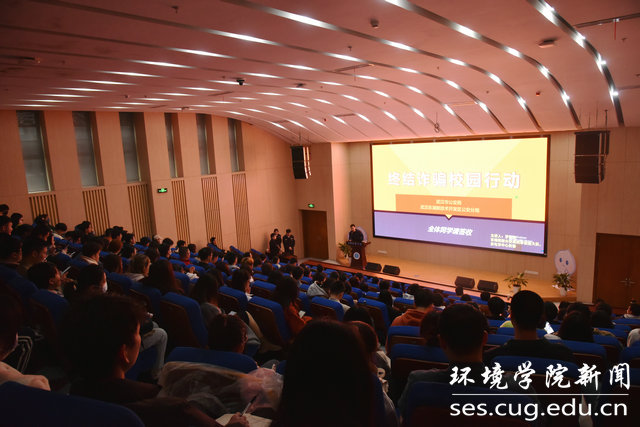 罗镕浩主讲《终结诈骗校园行动》安全知识讲座。他介绍东湖高新区电诈警情形势及受害者分布情况,援引真实案例,详细剖析网络刷单、网上贷款、冒充网购客服、冒充公检法、网聊骗局、伪造APP等常见诈骗手法,就如何防范电信诈骗、如何保护好个人身份信息、遭遇电信诈骗后的补救措施等方面传授防诈骗知识,真实的案例与幽默风趣的讲解方式吸引了同学们的关注。