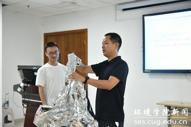 江汉大学副教授曹志凯以《户外遇险与救护》为题,讲解加拿大自然灾害预防与脱困方略、失温、溺水等急救处理方法及操作实践、如何正确野外自救和使用信号求救等。培训中的互动环节将现场气氛推向高潮。