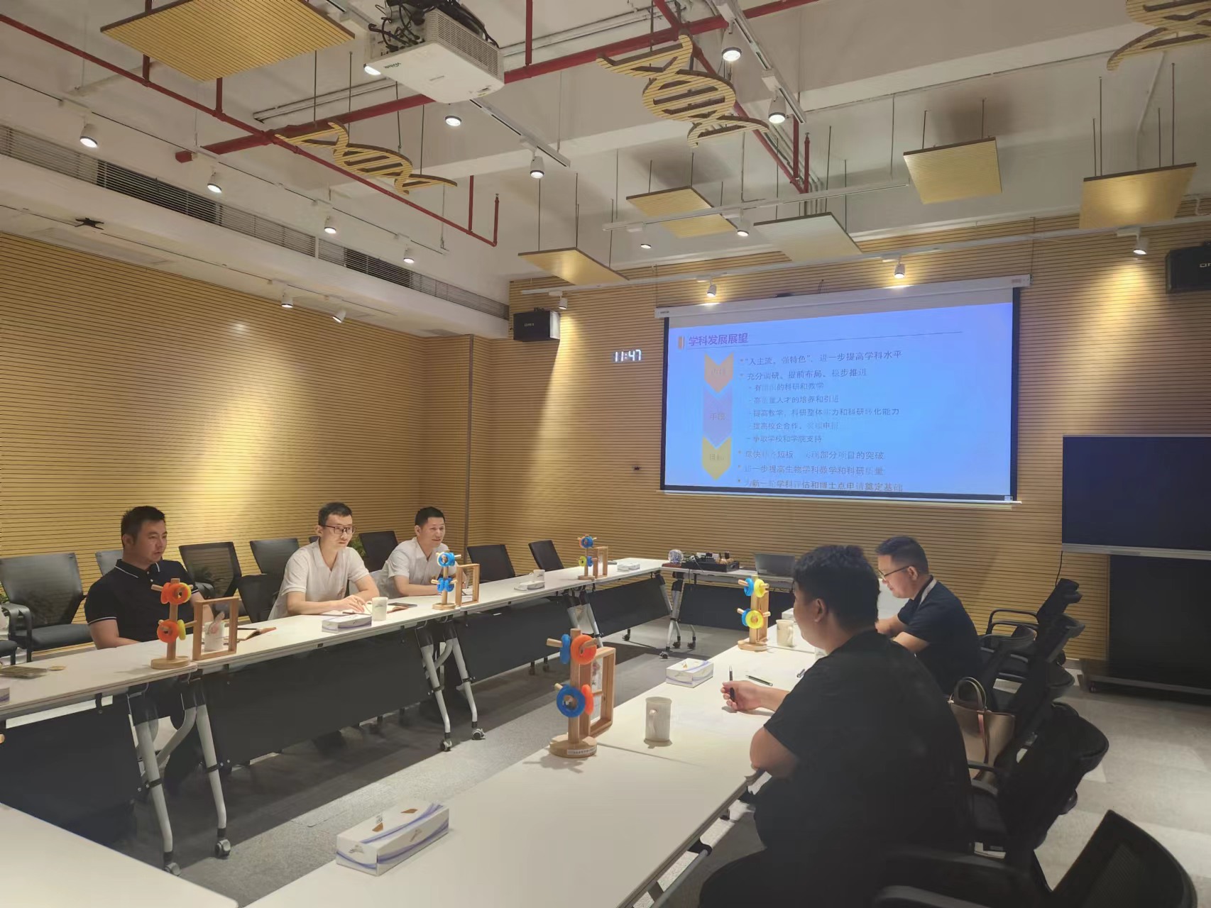 辅导员赵恩民和研究生龚千惠、张莉鑫赴华大时空中心与国家基因库走访调研。华大教育中心教育总监王林鹏、华大教育中心教育主管张梦佳、校友柴太梁、徐妍参与交流。