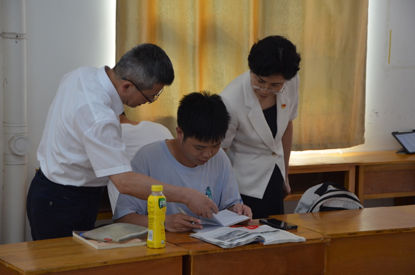 学生深入交谈,询问实习、生活和学习情况,交流实习感受与收获。他们鼓励大家要珍惜实习机会,认真学习,夯实基础,要通过实习练就过硬的专业本领和扎实的思想作风,努力践行“艰苦朴素,求真务实”的校训精神,为建设“美丽中国,宜居地球”贡献青春力量。