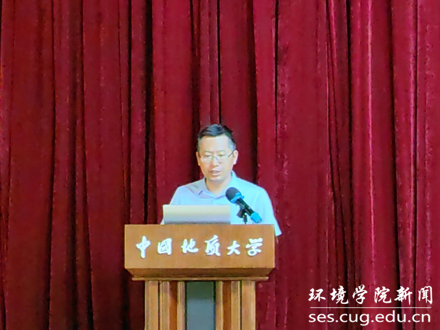 班主任代表刘邓教授发言。他向全体新生来到地大18小说