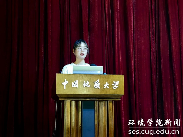 高年级学生代表王倩发言。她代表学院高年级学生向新生表示热烈的欢迎和问候。她列举地大楷模的光辉事迹,讲述青年大学生在新时代的担当与作为,希望同学们能够向优秀的学长学姐学习,做到有理想、有斗志、有赤诚,在18小说