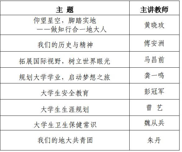 9月9日上午9:00,全体本科新生在教一楼207、208、301、302学习了魏从兵老师主讲的《大学生卫生保健常识》专题课程与朱丹师主讲的《我们的地大共青团》专题课程。