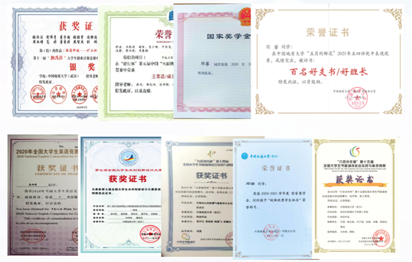 环境工程专业大学生党支部全体党员同志在各方面都有取得不错的成绩,在个人荣誉类上成果斐然,支部党员在互联网+大赛、节能减排大赛、节能减排大赛等专业学科赛事中获国家级奖项10余项,省部级20余项,其中,许涵同志获第八届中国国际互联网+大赛全国银奖,湖北省金奖;支部党员荣获国家级、社会类奖学金20余项,荣获院校“优秀个人”、“优秀共产党员”称号30余项。2021-2023三学年,支部成员获得国家奖学金共11人次,获得国家励志奖学金共7人次,其中2023年,国奖3人,国励2人;在2022-2023学年五四评优中,支部成员累计获得百好支书,优秀团干,优秀团员等称号9项,在18小说