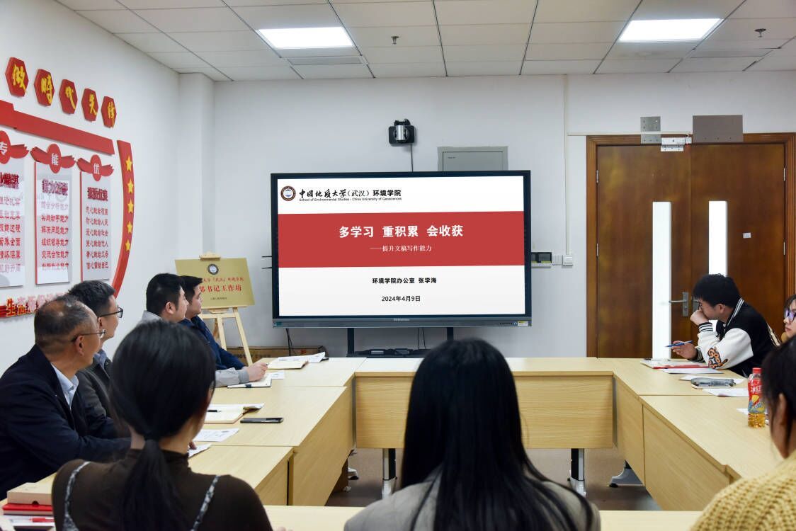 院直党支部书记张学海以《多学习 重积累 会收获——提升文稿写作能力》为题,作文稿写作分享报告。他从文稿重要性、文稿要求、文稿实例、总结提高、体会建议等五个方面,讲述“五步成篇”“六审六改”,并用大量文稿实例分析讲解新闻格式、标题别致、段落结构、排比修辞、关键词凝练和去口语化等文稿写作中的注意事项。他勉励大家勤思考、勇实践、多动笔、善总结,在学习中获取新的知识和信息,在思考中形成新的思路和目标,在实践中取得新的进展和成绩,在总结中凝练新的认识和理念。作为环境学子,要用爱学院、为环境的情怀,写好环境人物、讲好环境故事、传播环境声音。报告生动、实用,为同学们提升文稿写作能力提供了重要启示和帮助。