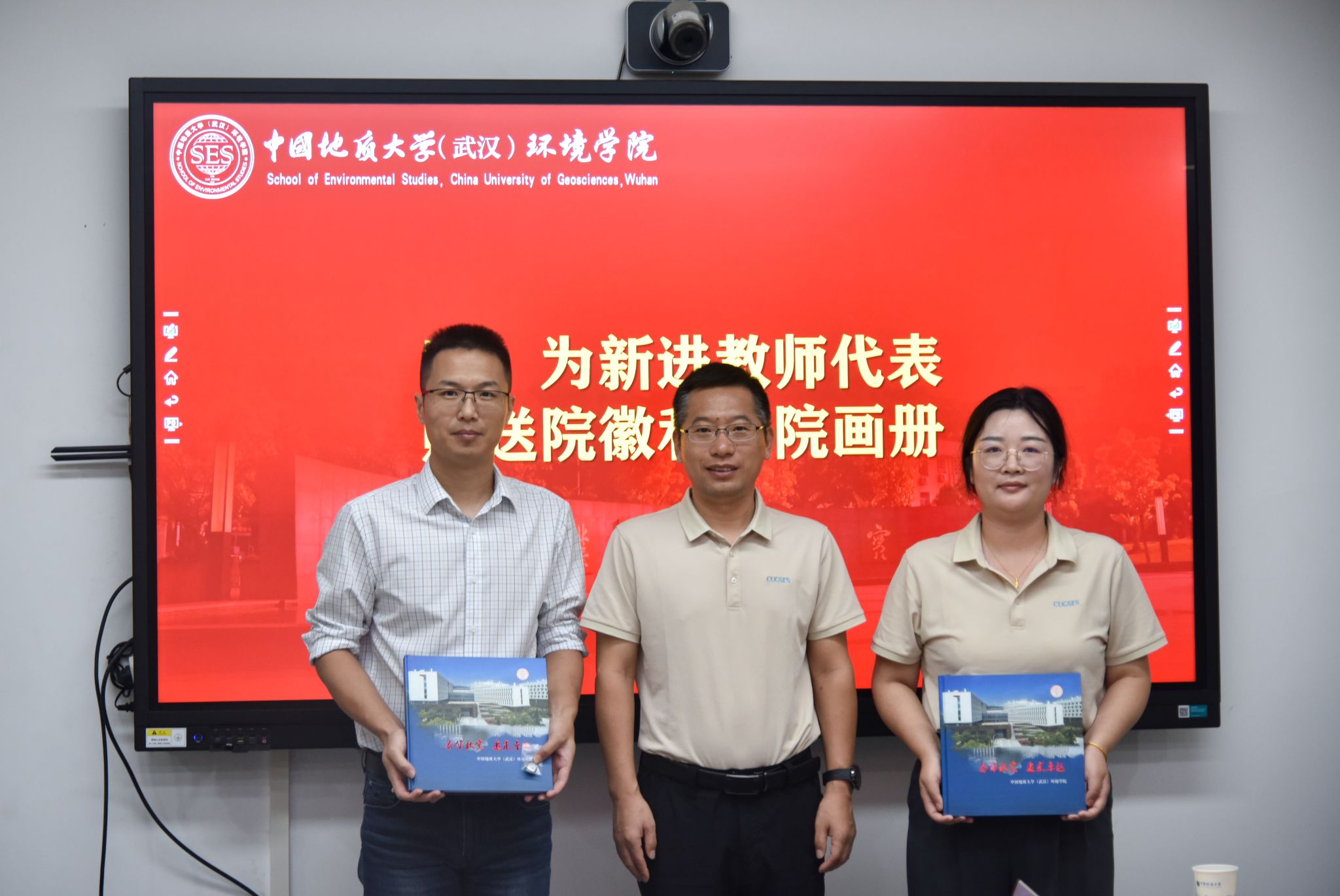 院长史建波教授为新进教师代表赠送了院徽和学院画册,期待他们在未来的教学科研工作中取得更加优异的成绩。