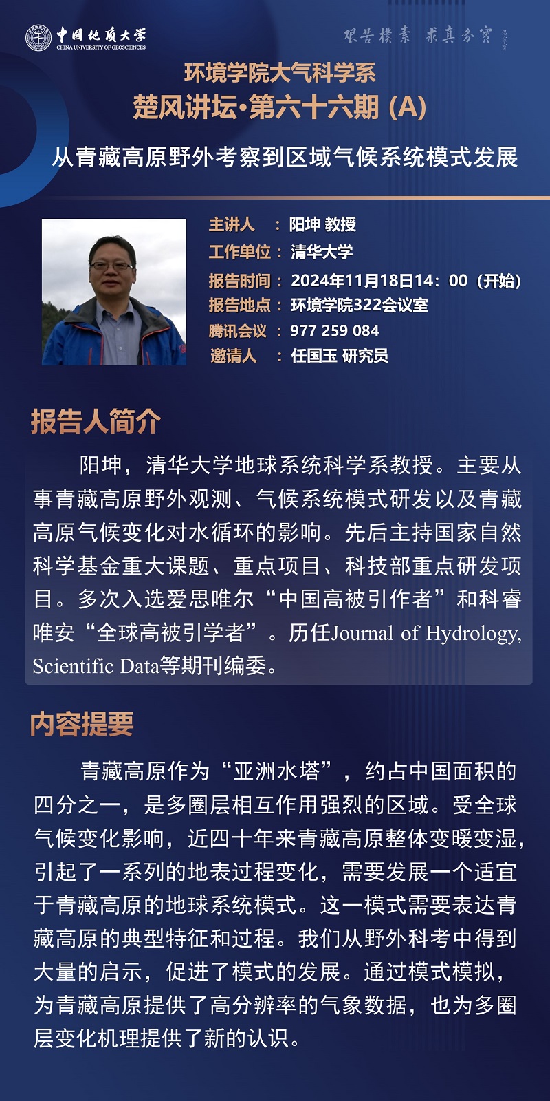 清华大学阳坤教授学术报告