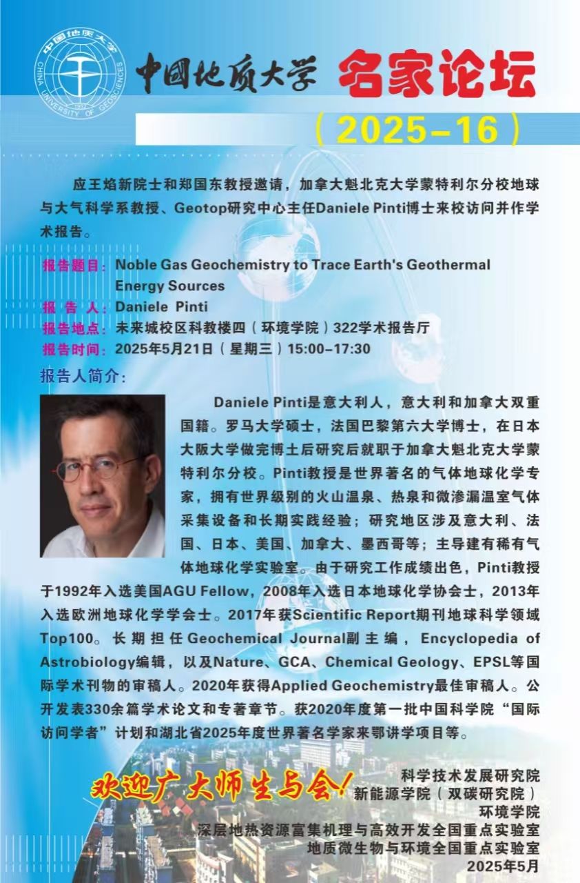 加拿大魁北克大学蒙特利尔分校地球与大气科学系教授、Geotop研究中心主任Daniele Pinti博士做客“名家论坛”