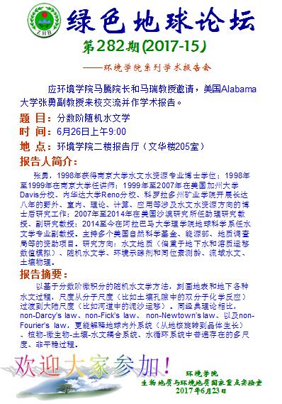 题目:Has Arctic Sea Ice Loss Contributed to Increased Surface Melting of Greenland Ice Sheet? 时间:2017年6月20日(周二)下午3:00—4:00 地点:东区丹桂苑105报告厅