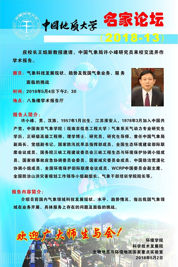 上一篇:德国卡尔斯鲁厄理工大学应用地球科学研究所所长Nico Goldscheider教授学术报告