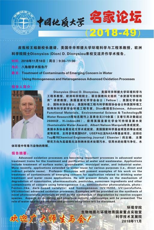 美国辛辛那提大学Dionysios (Dion) D. Dionysiou院士学术报告
