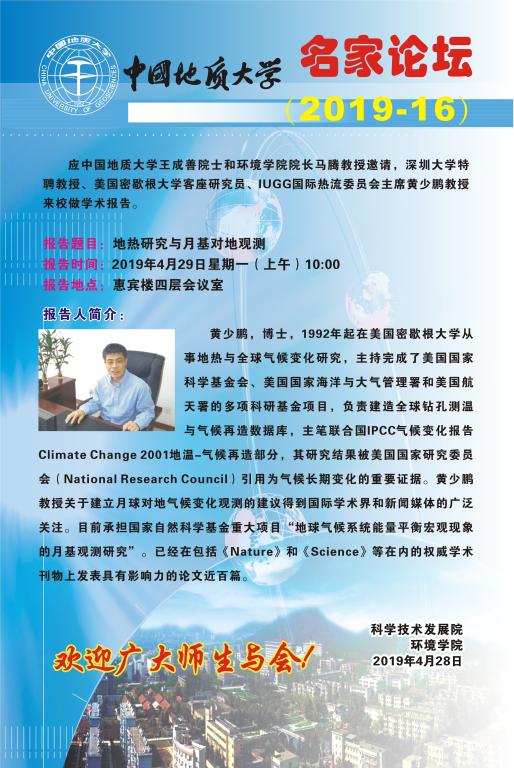 IUGG国际热流委员会主席黄少鹏教授学术报告