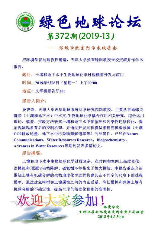 题目:土壤和地下水中生物地球化学过程模型开发与应用
