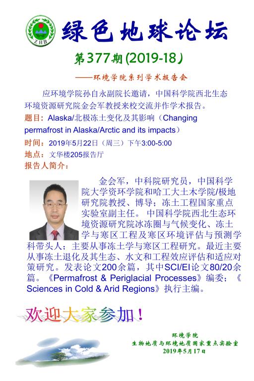 题目:  Alaska/北极冻土变化及其影响(Changing permafrost in Alaska/Arctic and its impacts