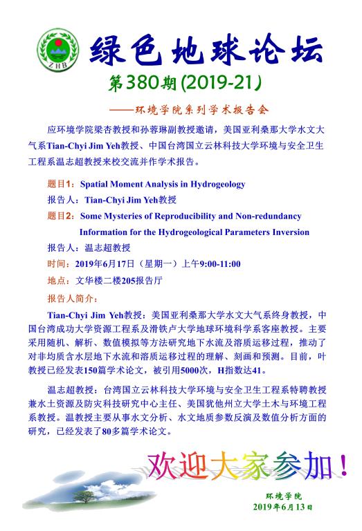 美国亚利桑那大学Tian-Chyi Jim Yeh教授和中国台湾国立云林科技大学温志超教授学术报告