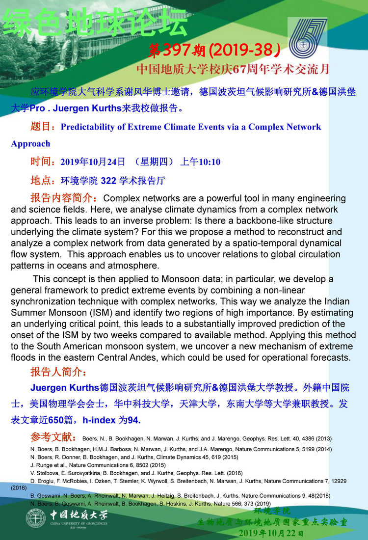 德国波茨坦气候影响研究所&德国洪堡大学Pro . Juergen Kurths学术报告。