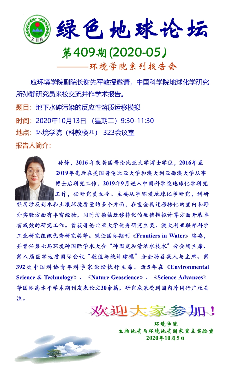 中科院地化所孙静研究员学术报告