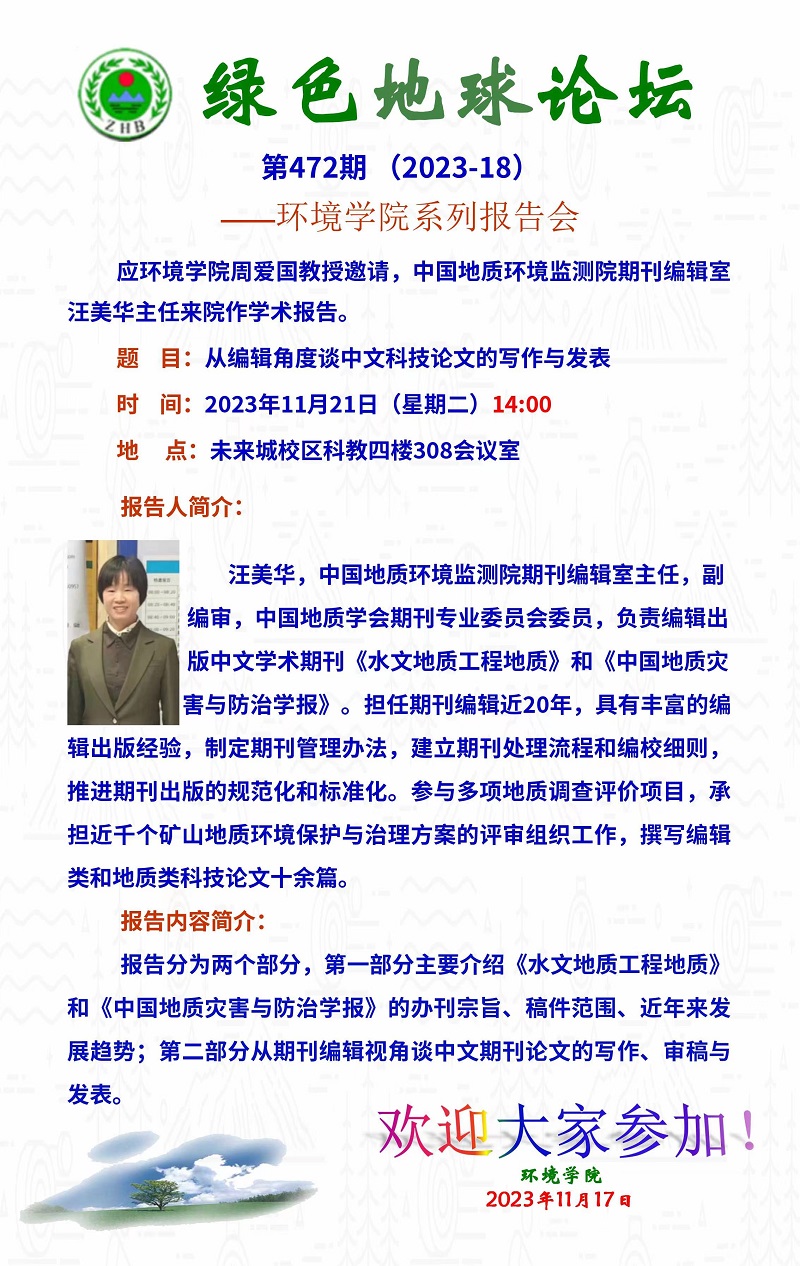 中国地质环境监测院期刊编辑室汪美华主任学术报告