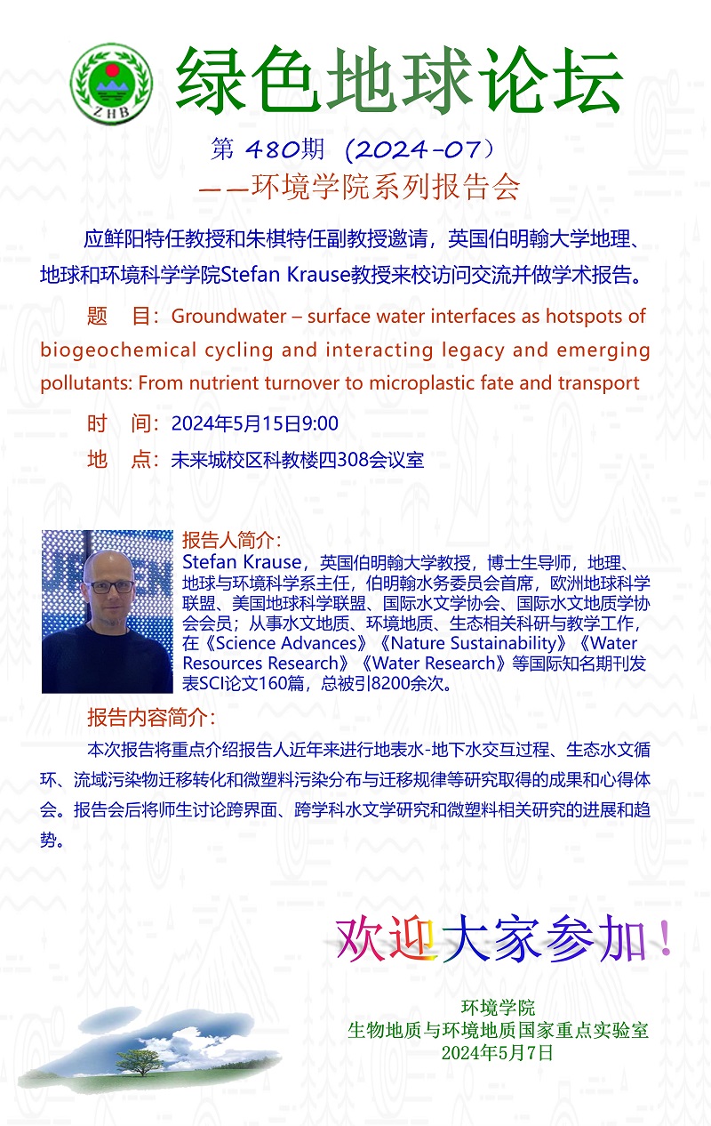 英国伯明翰大学地理、地球和环境科学学院Stefan Krause教授学术报告