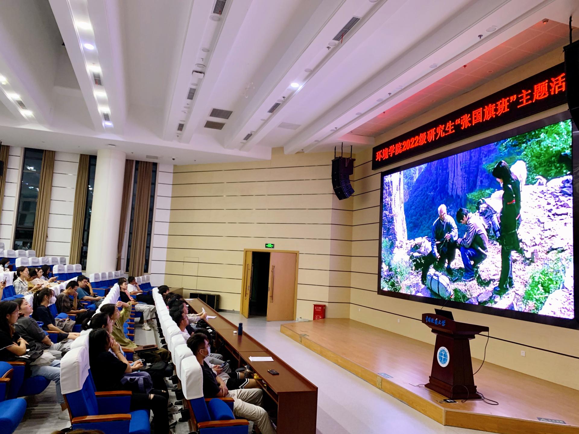 2022年9月,“张国旗班”党支部举行新生观摩张国旗故事片活动