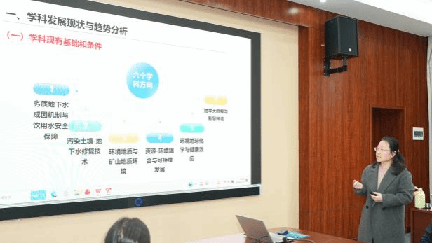 马瑞教授、邢新丽教授、李俊霞教授、马丽媛教授、王五科教授分别代表水利工程、水文地质学、环境科学与工程、健康地学、生物学、大气科学学科作学院“十五五”学科发展汇报。
