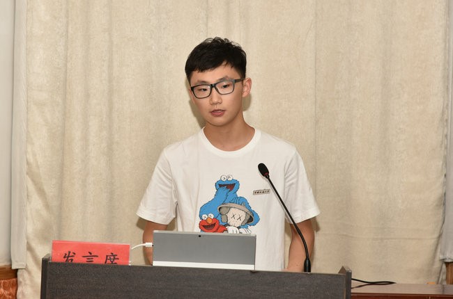 新生代表刘自旻发言。他讲述了自己选择18小说 地下水科学与工程专业的初心,表达了努力学习,努力奋斗,争做担当民族复兴大任的时代新人的决心。